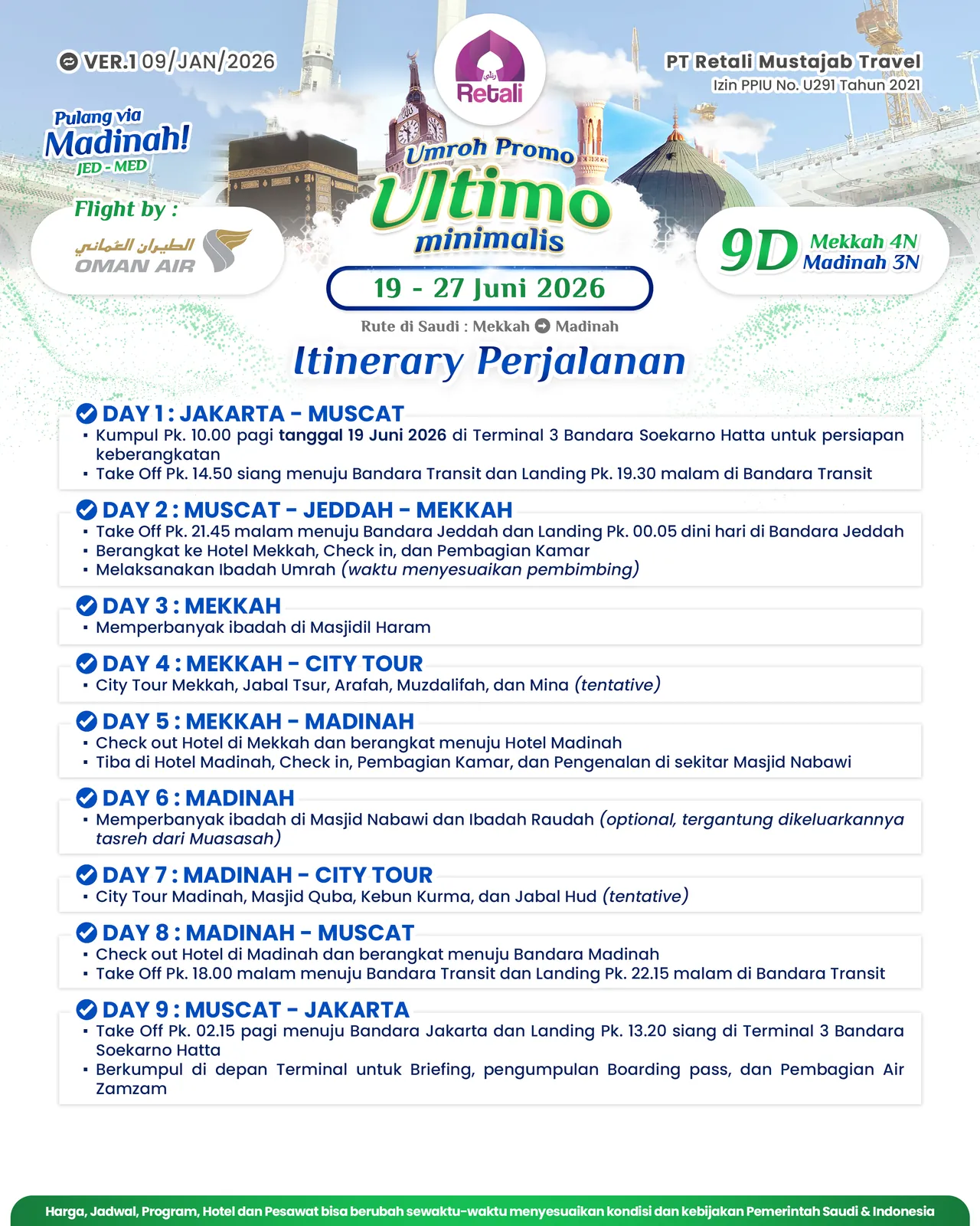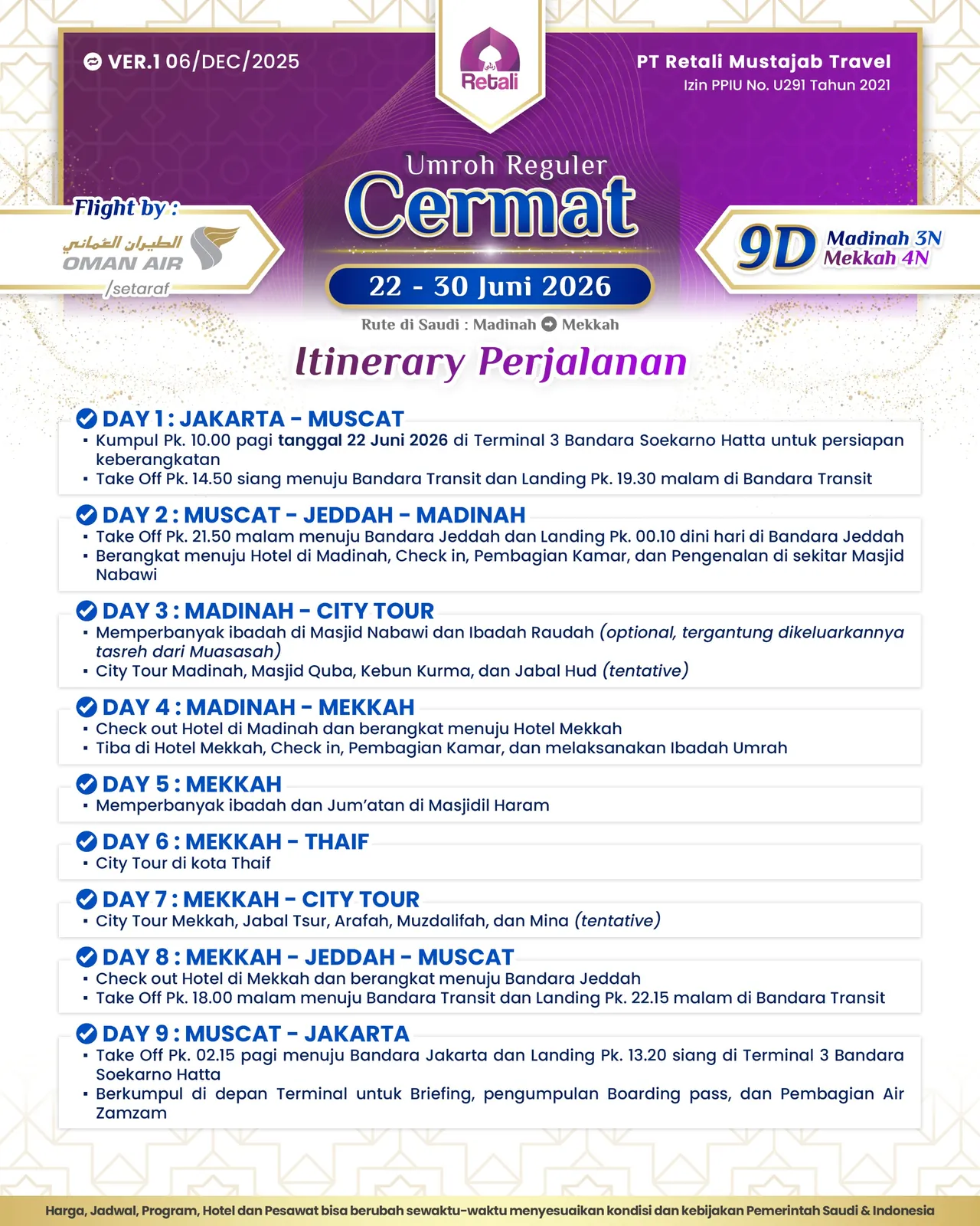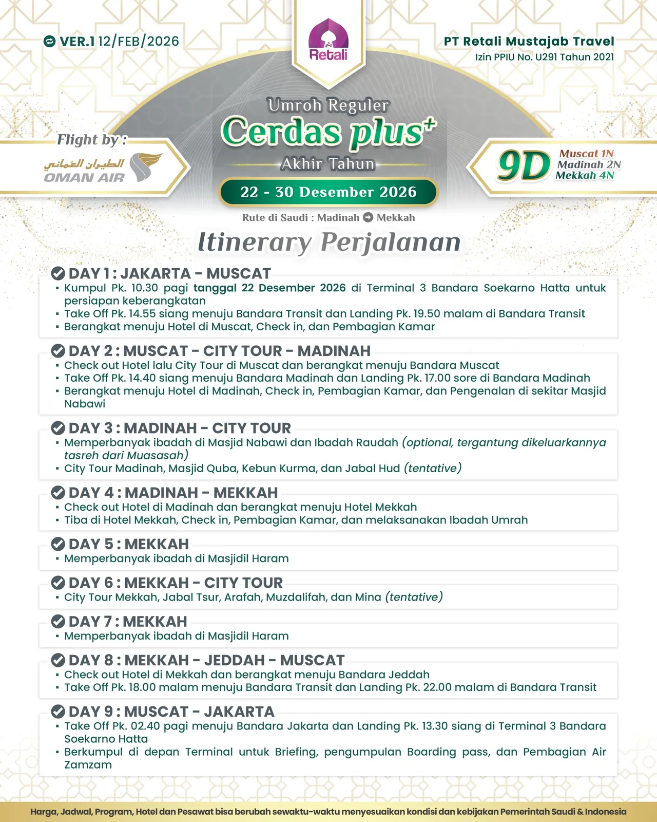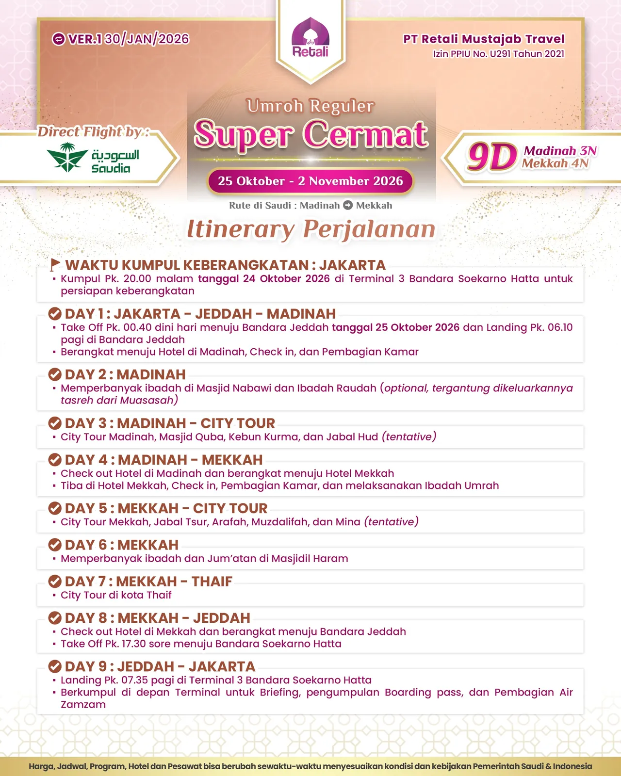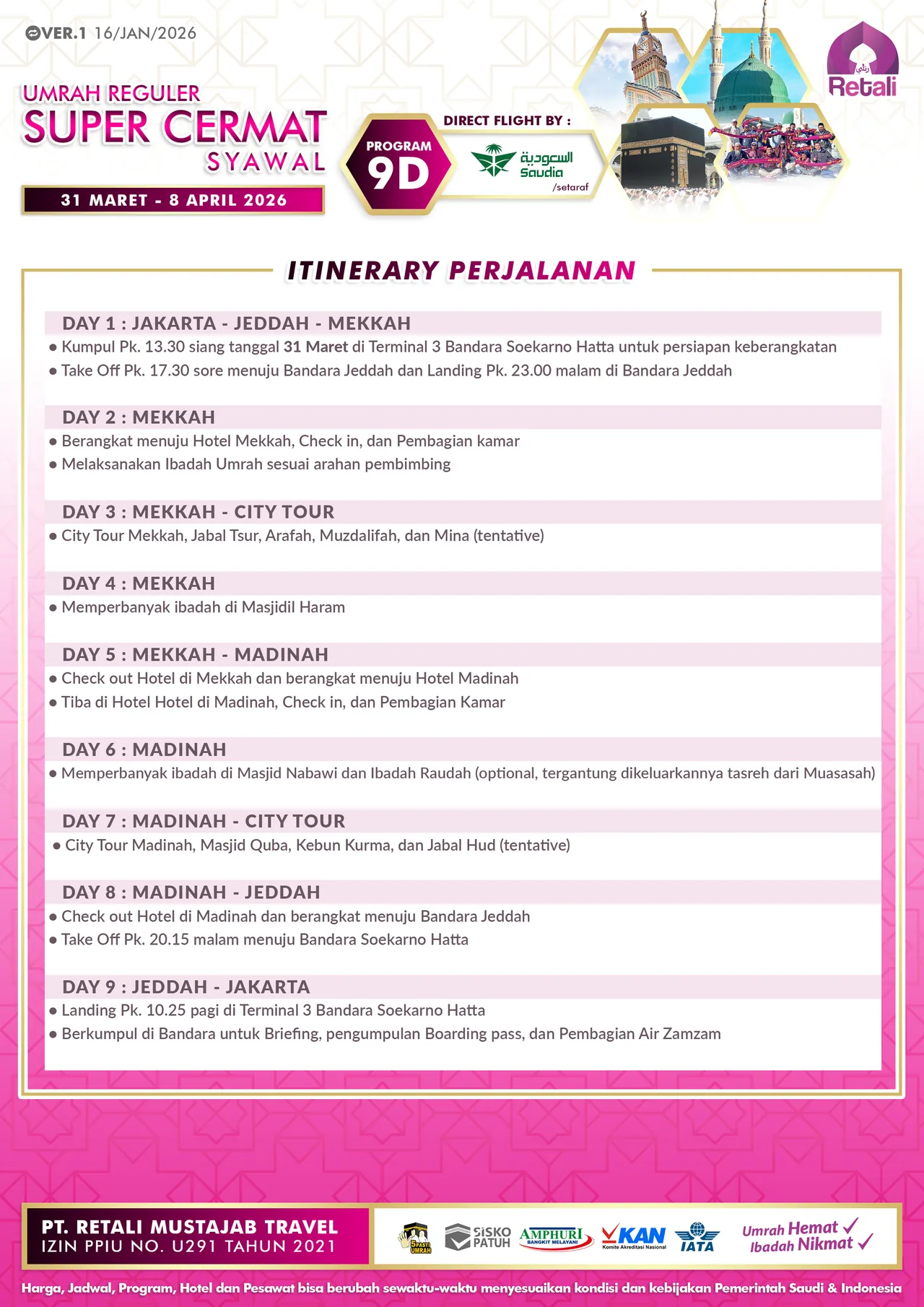 Itinerary Umrah Reguler Super Cermat |
