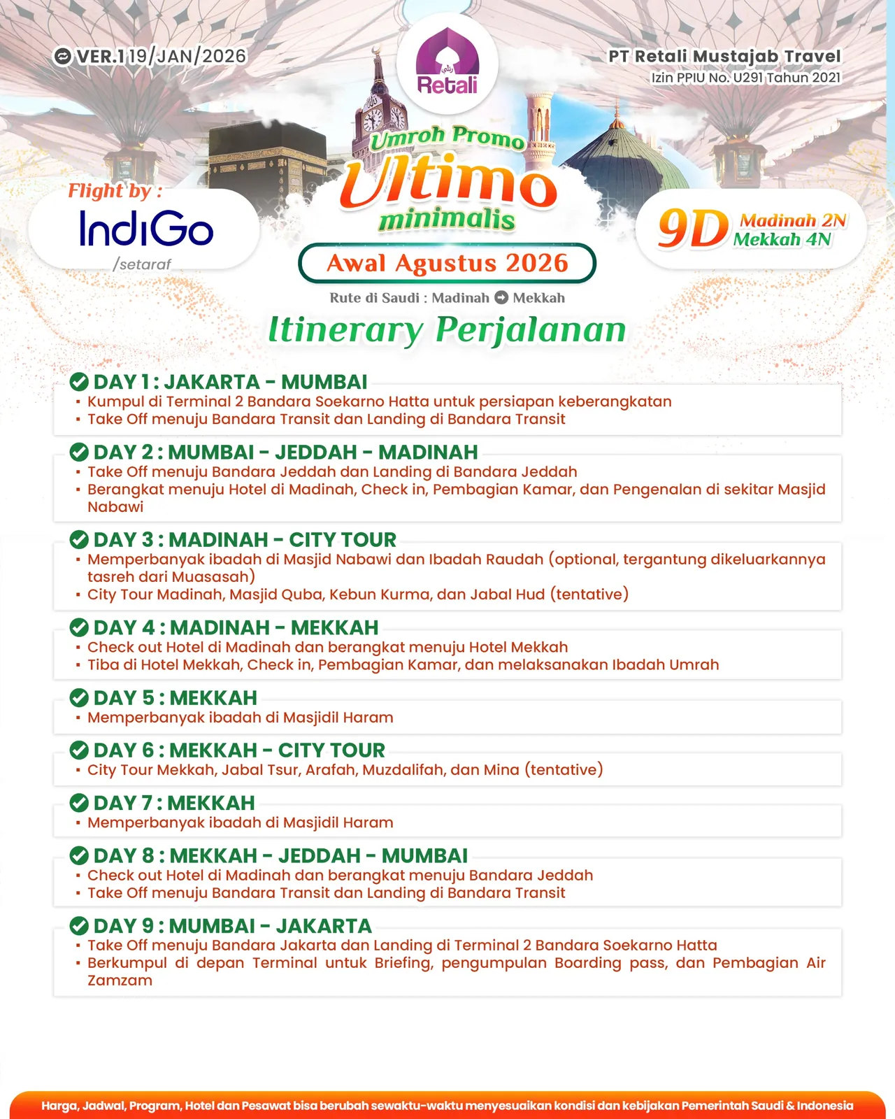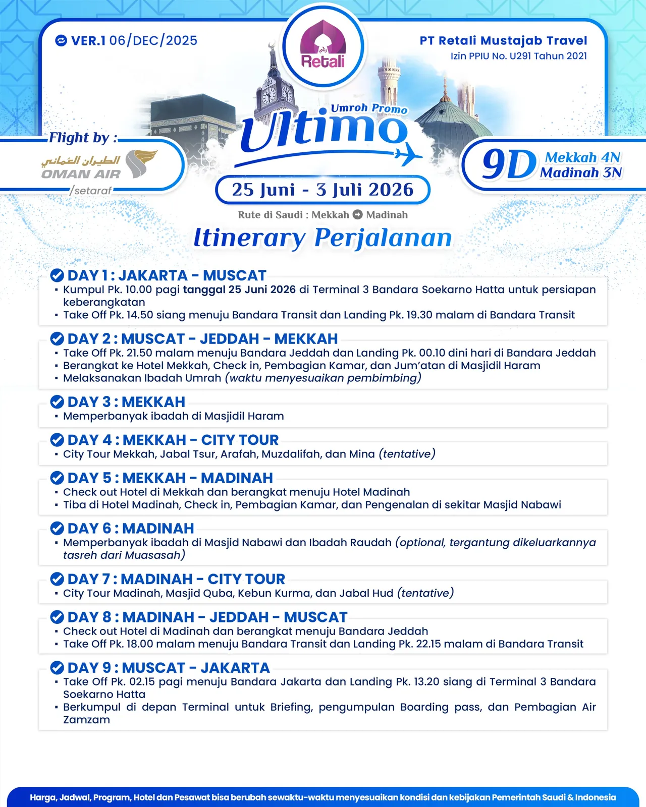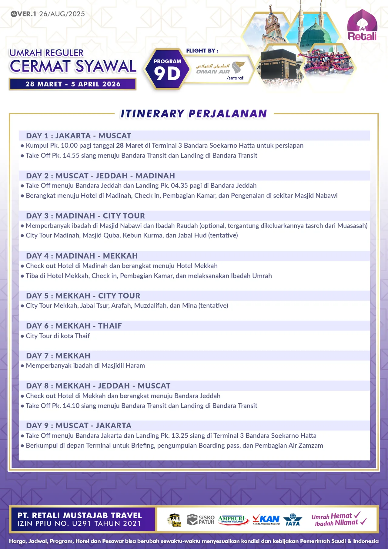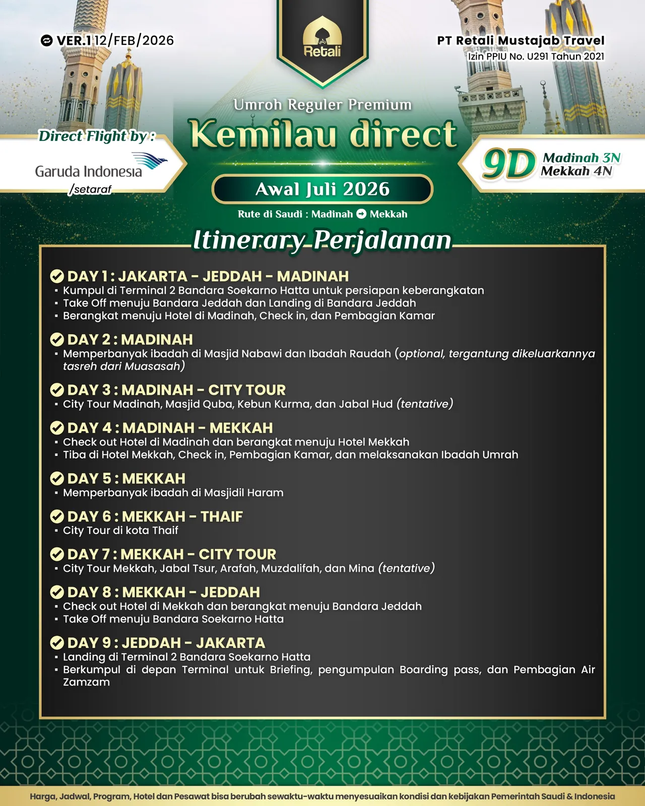 Itinerary Umrah Reguler Super Cermat |