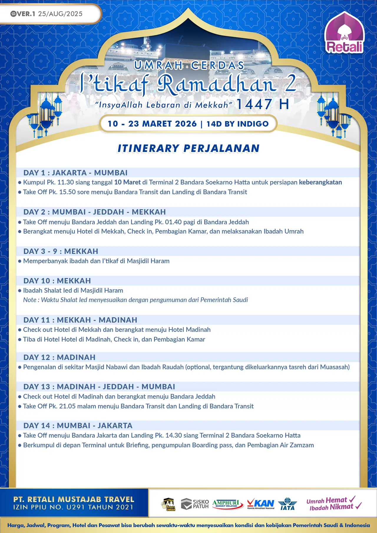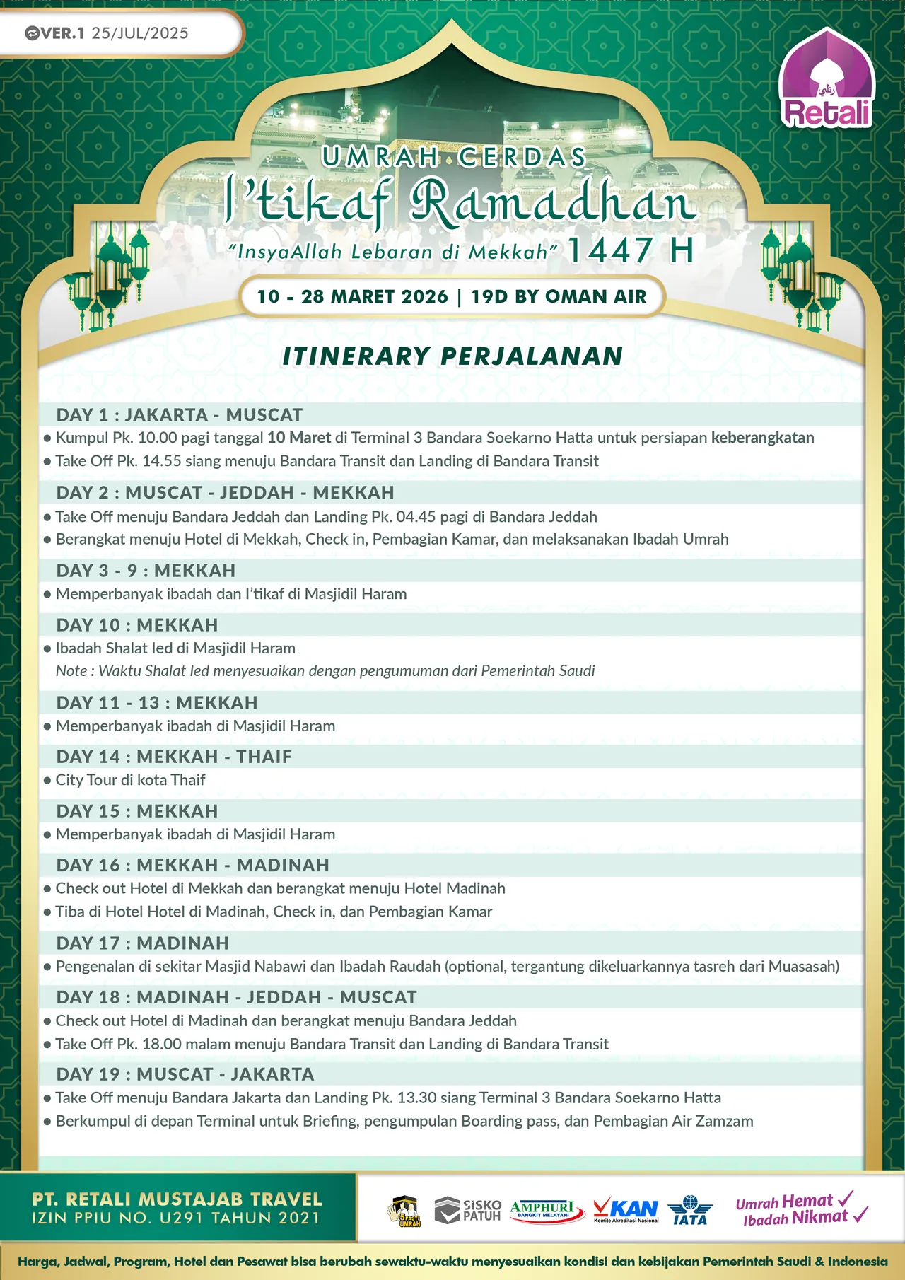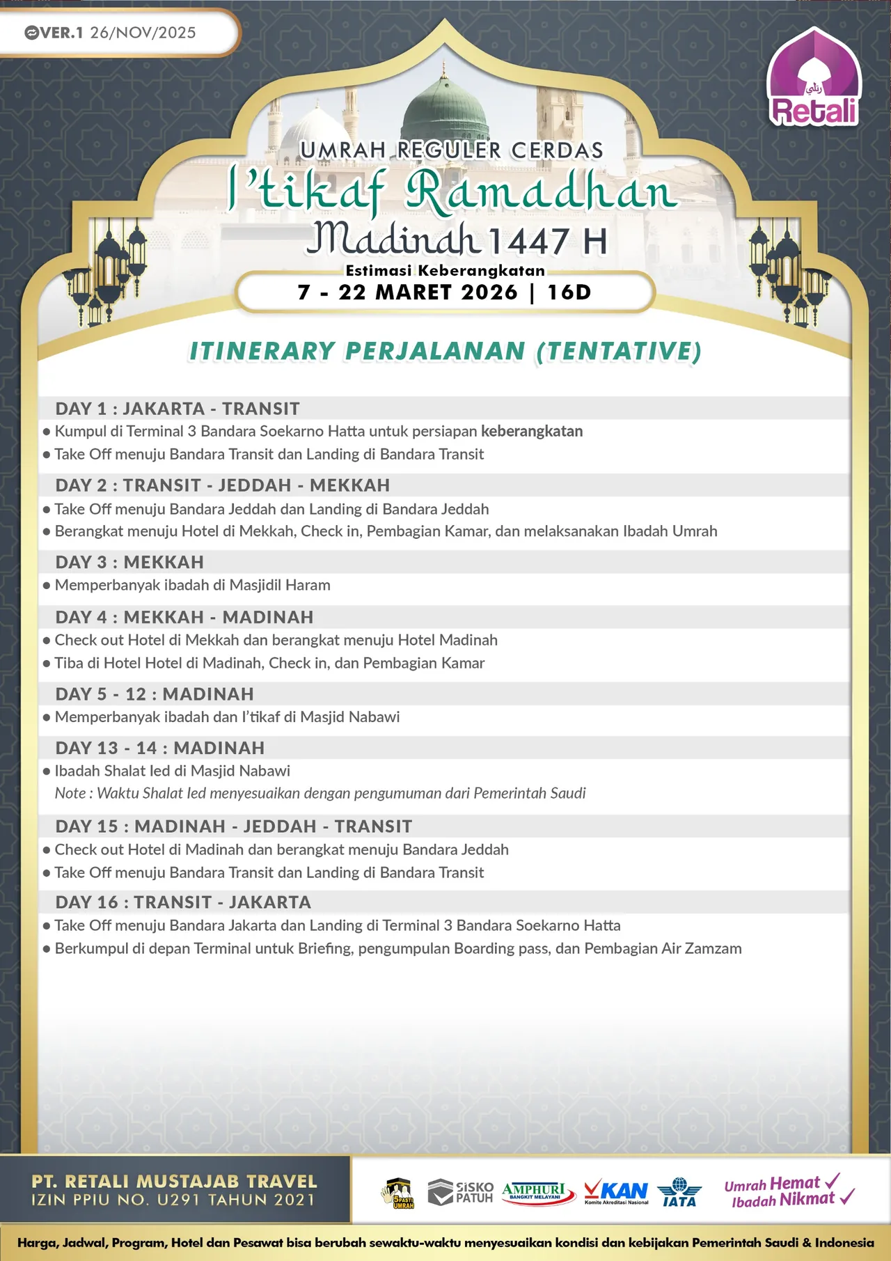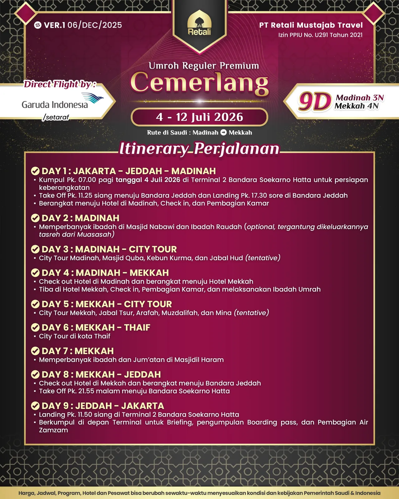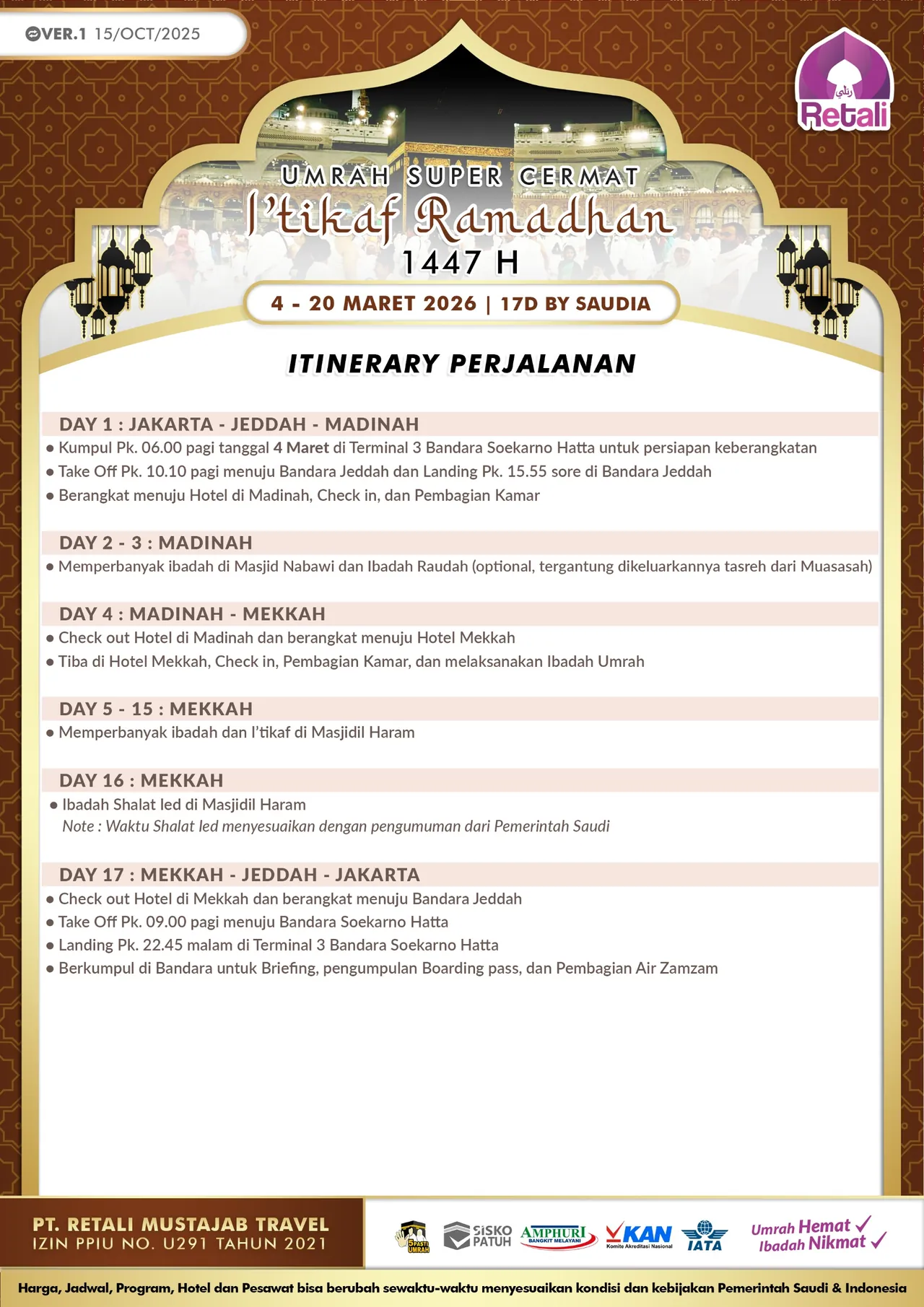 Itinerary Umrah Reguler Super Cermat |